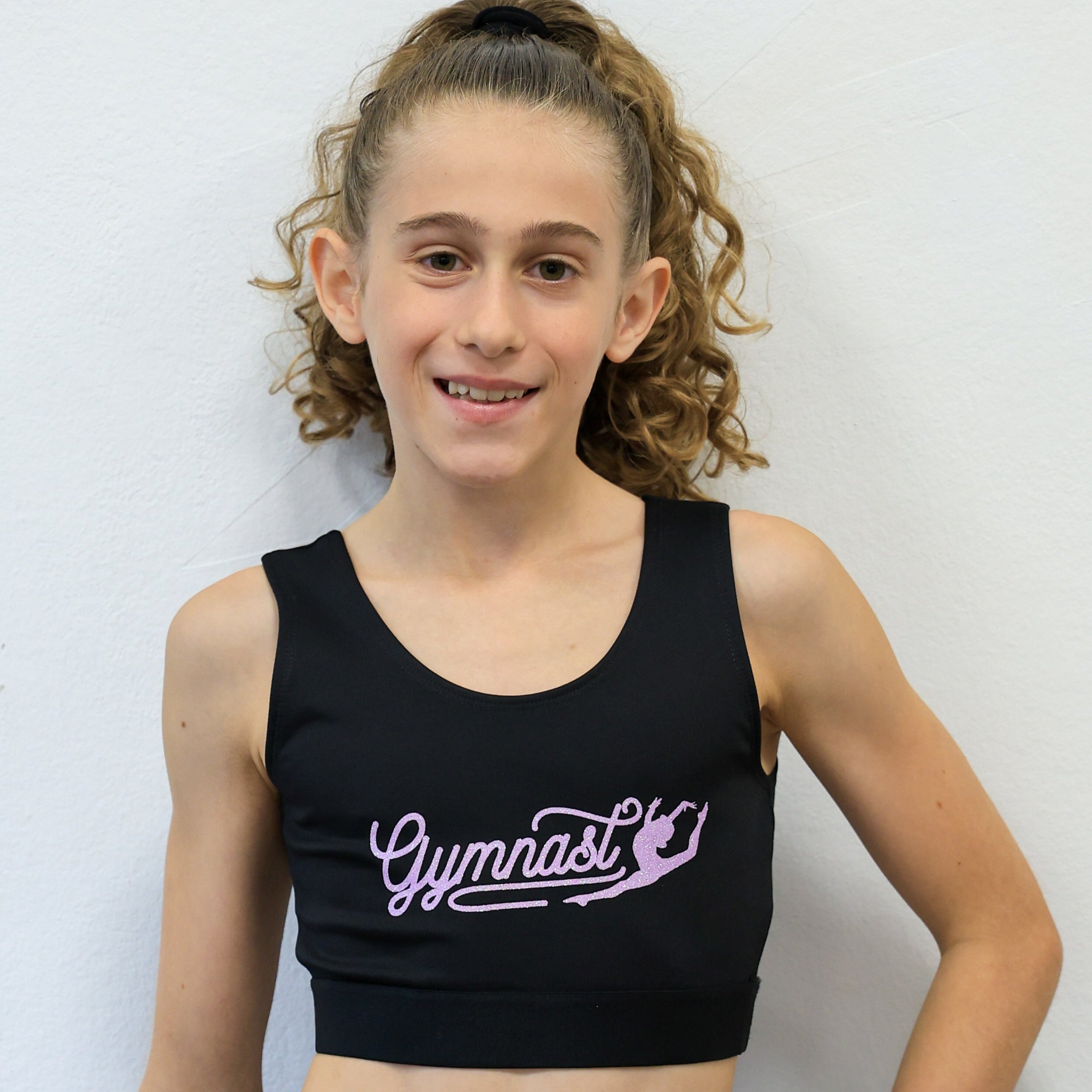 Mostra tutto il tuo amore per la ginnastica con il Top “Gymnast glitter rosa”!